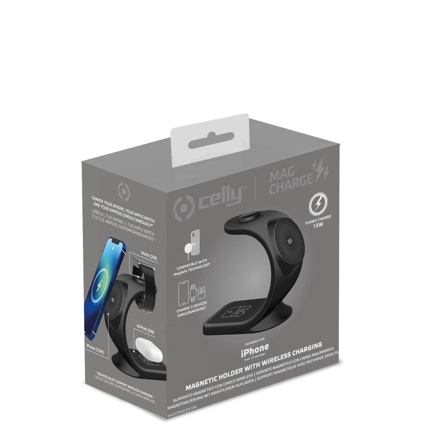 Celly MAGSAFE STAND CHARGE 3IN1 EVO BK
